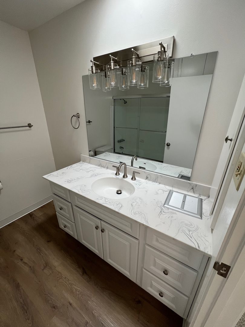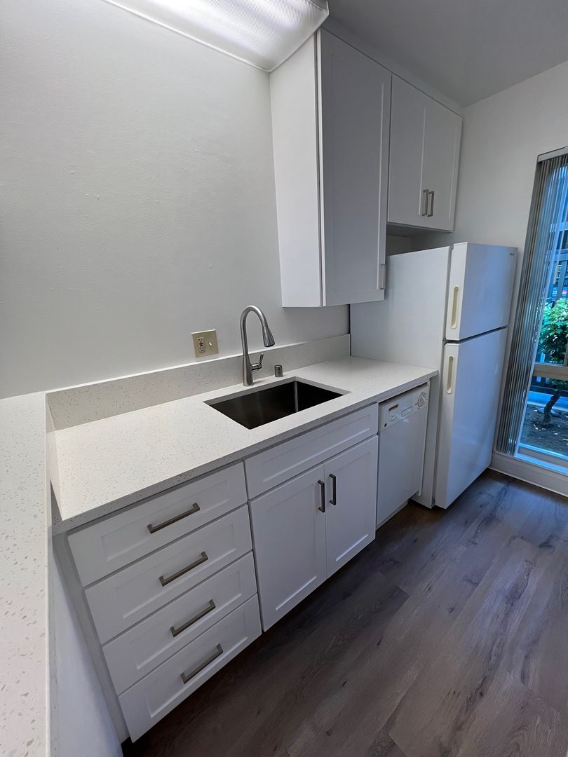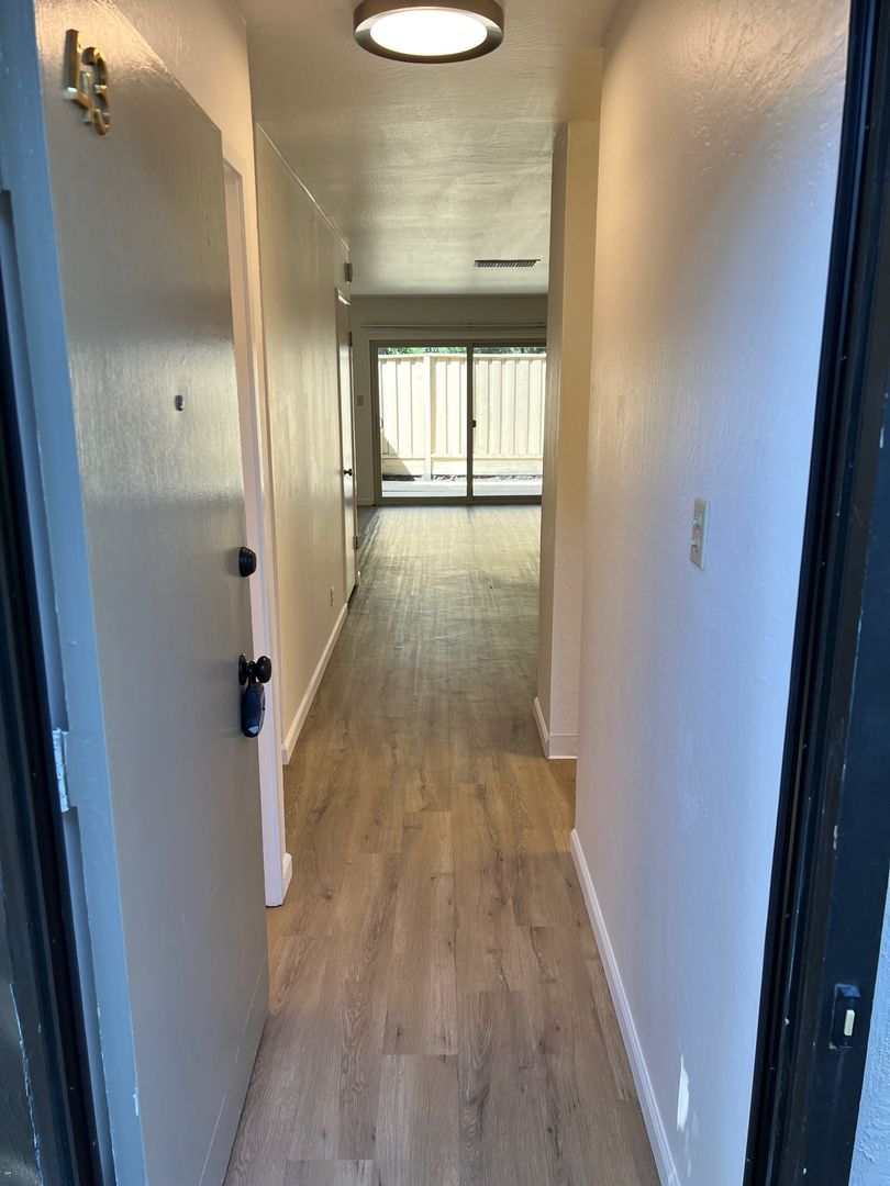 This townhouse-style apartment was recently renovated in its entirety, including new kitchen cabinets and countertops, new flooring all throughout, new bathroom vanities, and new plumbing and electrical fixtures. The unit also features central cooling and heating, dual-pane windows, and an accommodating patio area. The property owners pay for all water, trash, and sewer expenses.